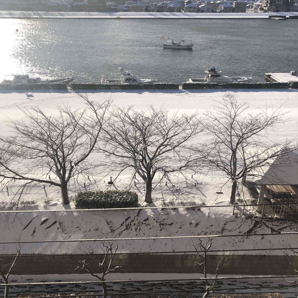 強風で積雪は5センチくらい