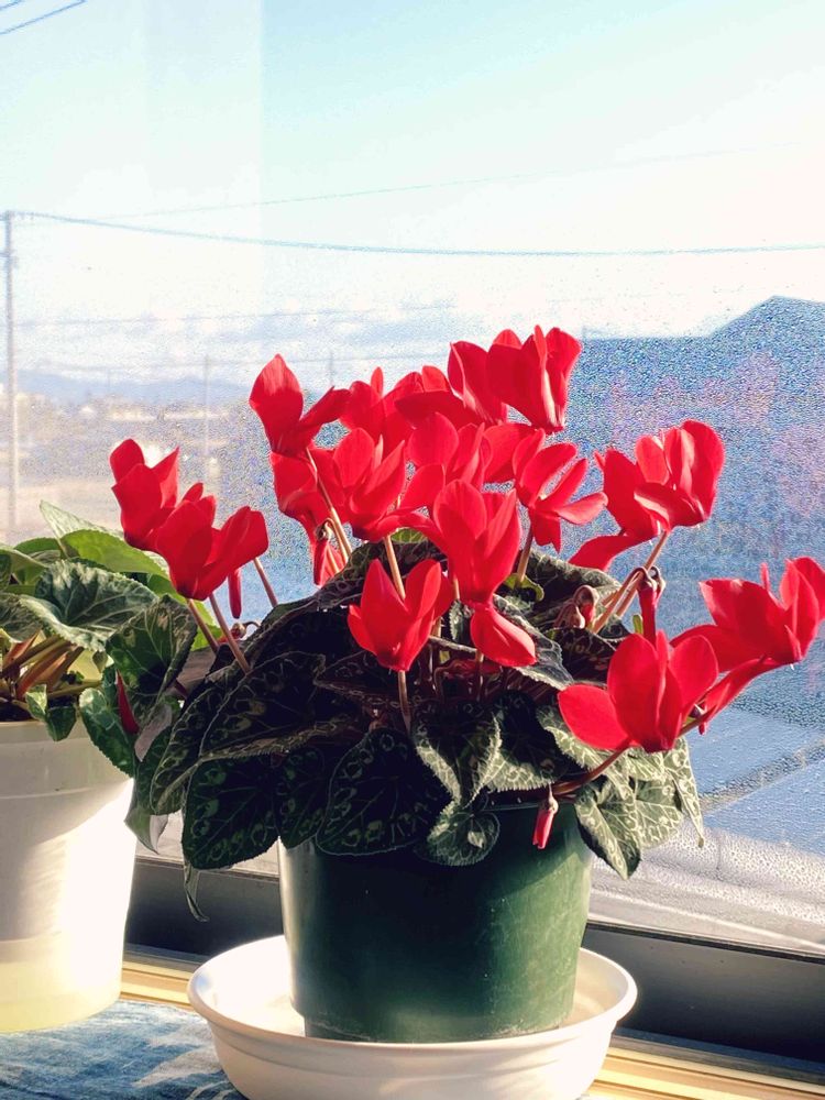 窓辺,シクラメン(篝火花),平和に感謝の投稿画像