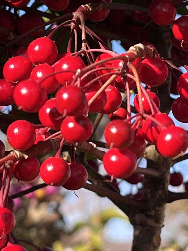 今朝の庭の万両 みんな鳥さんからのプレゼントです