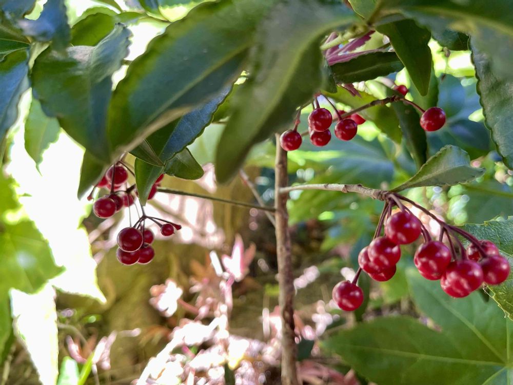 お隣の梅林には、鳥が運んで来たのでしょう、あちらこちらに赤い実が見えます🦅🍒