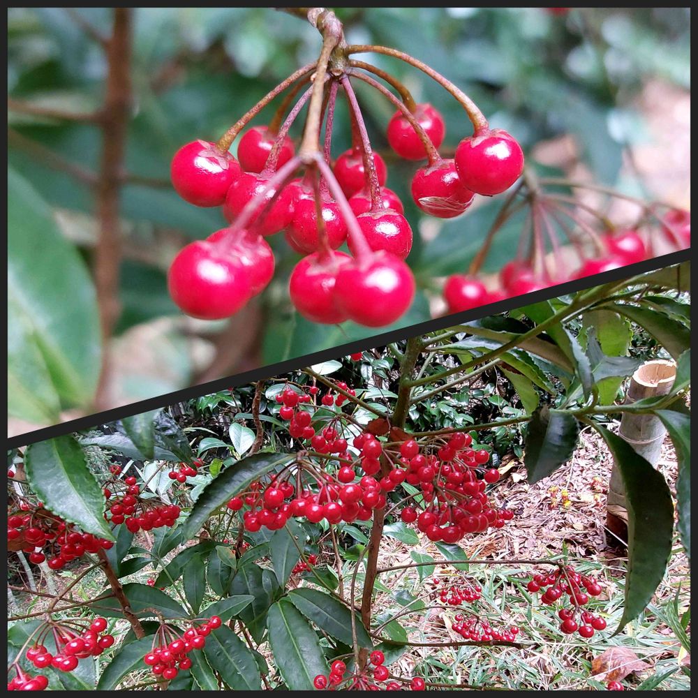 実家の竹藪に、あちこち、ナンテン、千両など、赤い実の植物🔴🌿🔴🌿