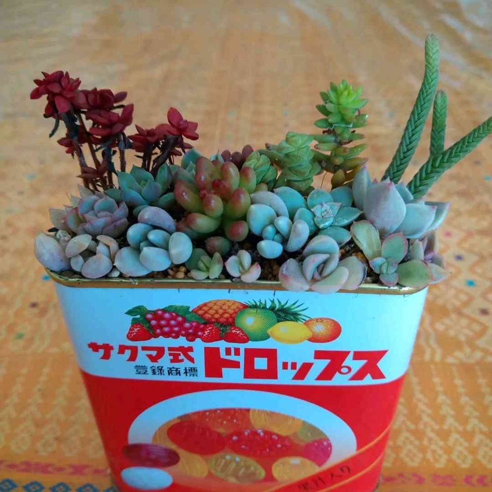 ドロップの缶 寄せ植え作りました^_^