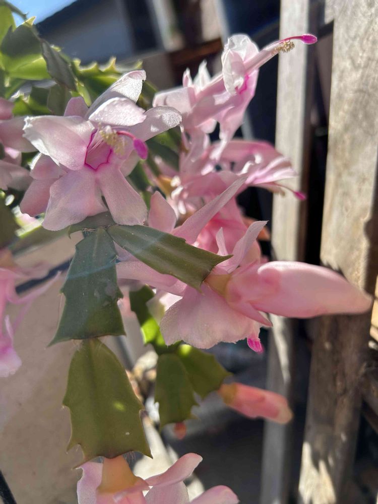 シャコバサボテンが咲いてくれました。玄関先が少し華やかになりました。