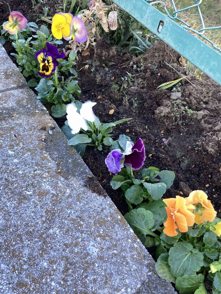 近所には可愛いちびっ子達もいるので、喜んでもらえたらいいなぁと思い、パンジーの苗や、チューリップの球根を植えてみました😊