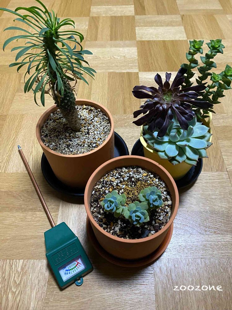 左下は先日、園芸店で見つけた土壌水分計。挿せば速攻で数値が出る🌡ので、使い良いです✨✨