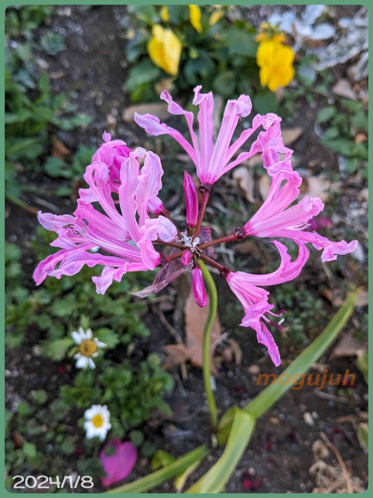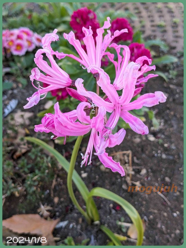 ピンク色ネリネの花が咲いています。