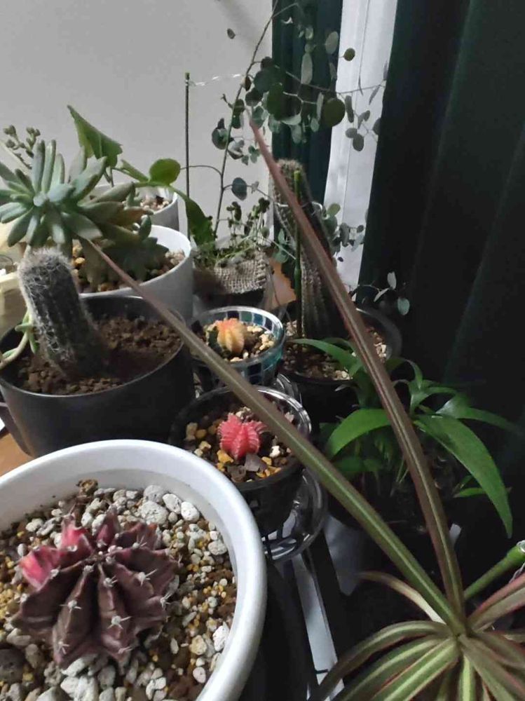 左上の多肉植物は貰い物で種類がわからないです...
