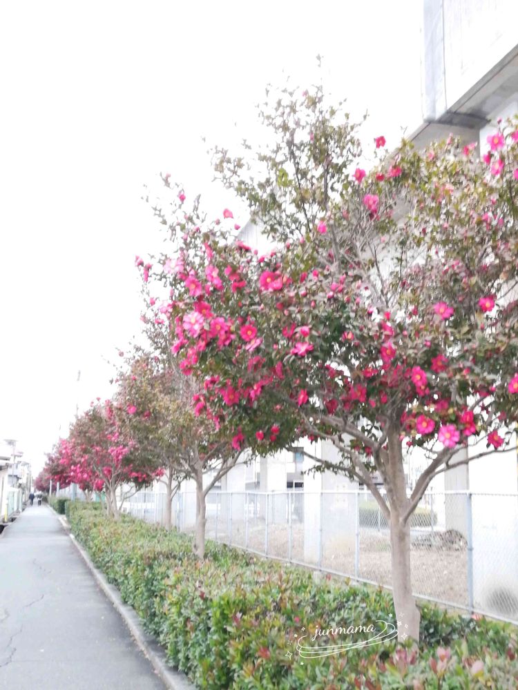 サザンカの街路樹、サザンカの生け垣、憧れです💓