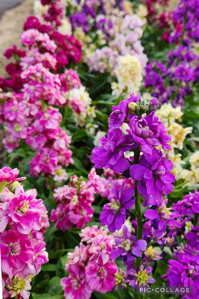 すごい🤩ストックの花壇だ~。ストックって花持ちがいいのがいいよね。