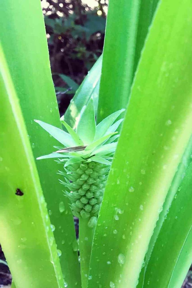 パイナップルリリーが庭にひっそりも花芽を出していました😃