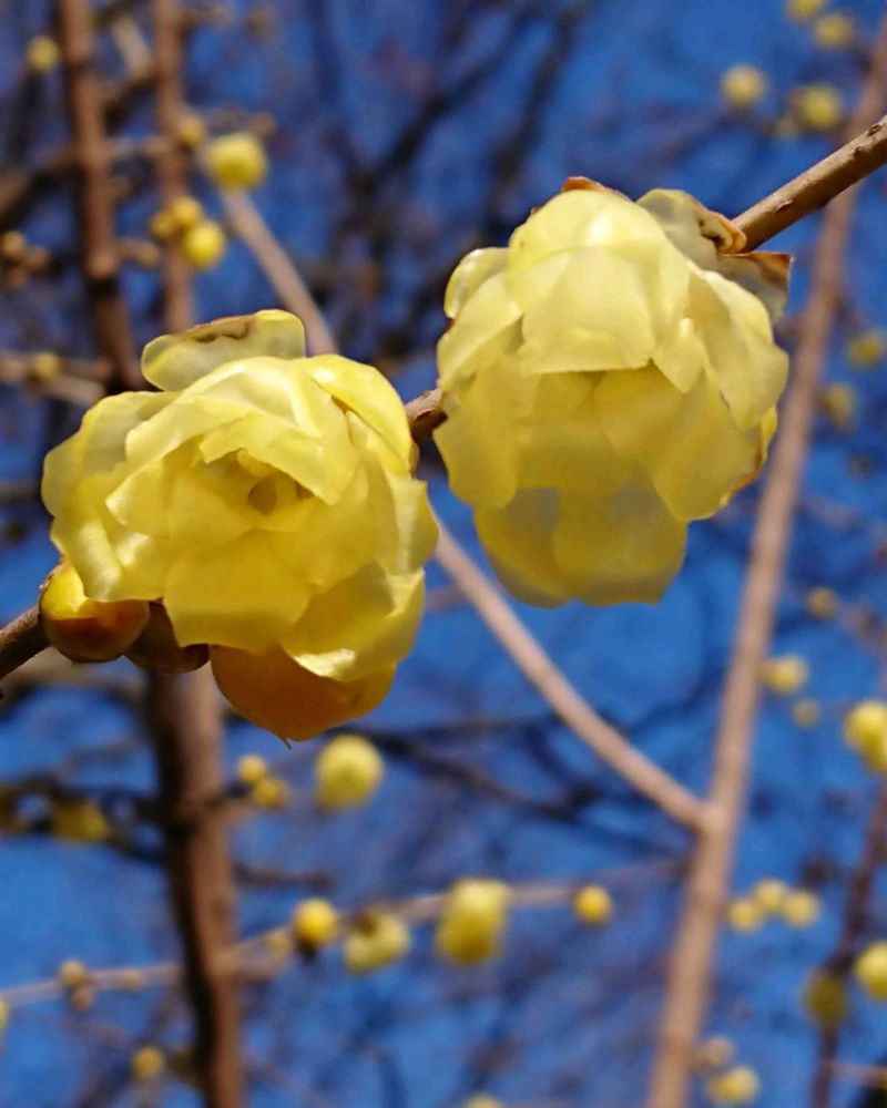 庭の蝋梅はお正月の生花をする時はまだ蕾でしたが最近の暖かさで満開になりましたね〜良い香りがしてますね😊