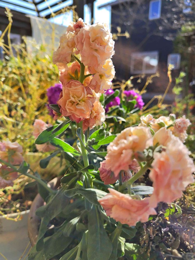 ストックはいつ見てもパイナップルの花姿で食べたくなり、気持ちが明るくなりますね❤️💜❤️今日は一段と寒いですが暖かくして過ごして下さいネ🤗