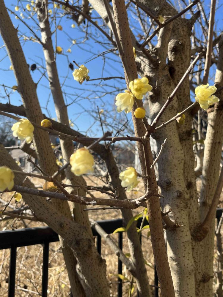 小さな庭♡,青い空♡,蝋梅の蕾と花の投稿画像