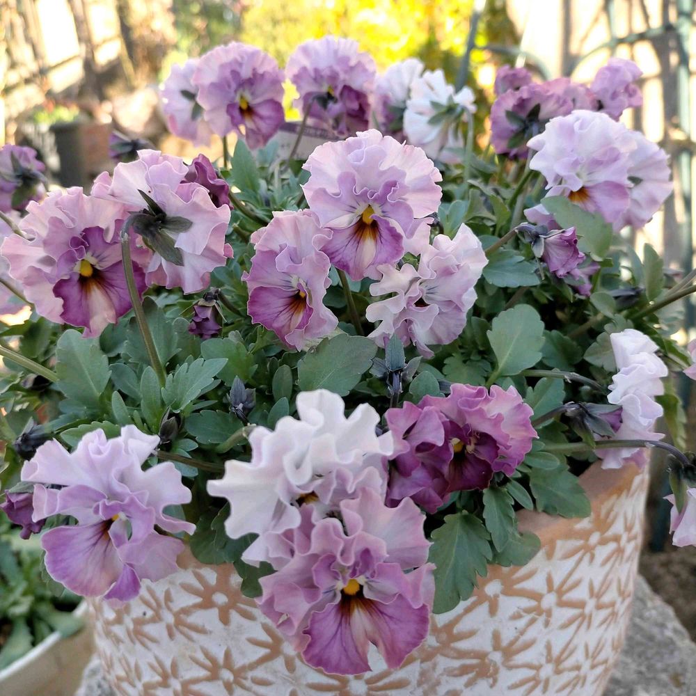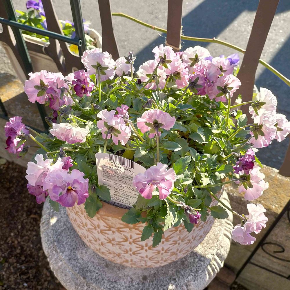 【1枚目】京成バラ園で購入したフリル咲きビオラ・ティアードがモリモリ咲いてきました!😆👍