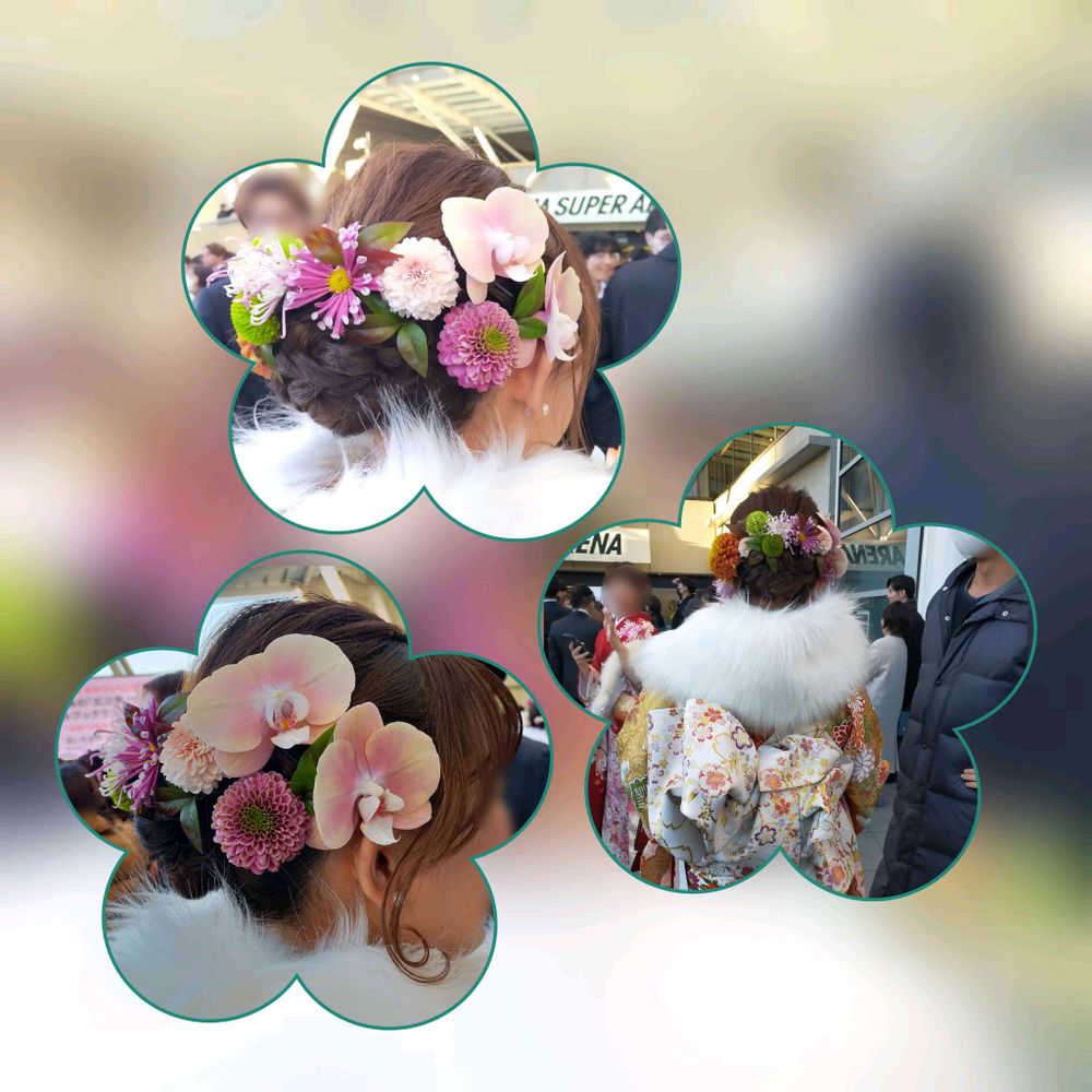 生花を髪に付けるのは、付け方が難しいと思うのですが、きっと工夫されたのですね。