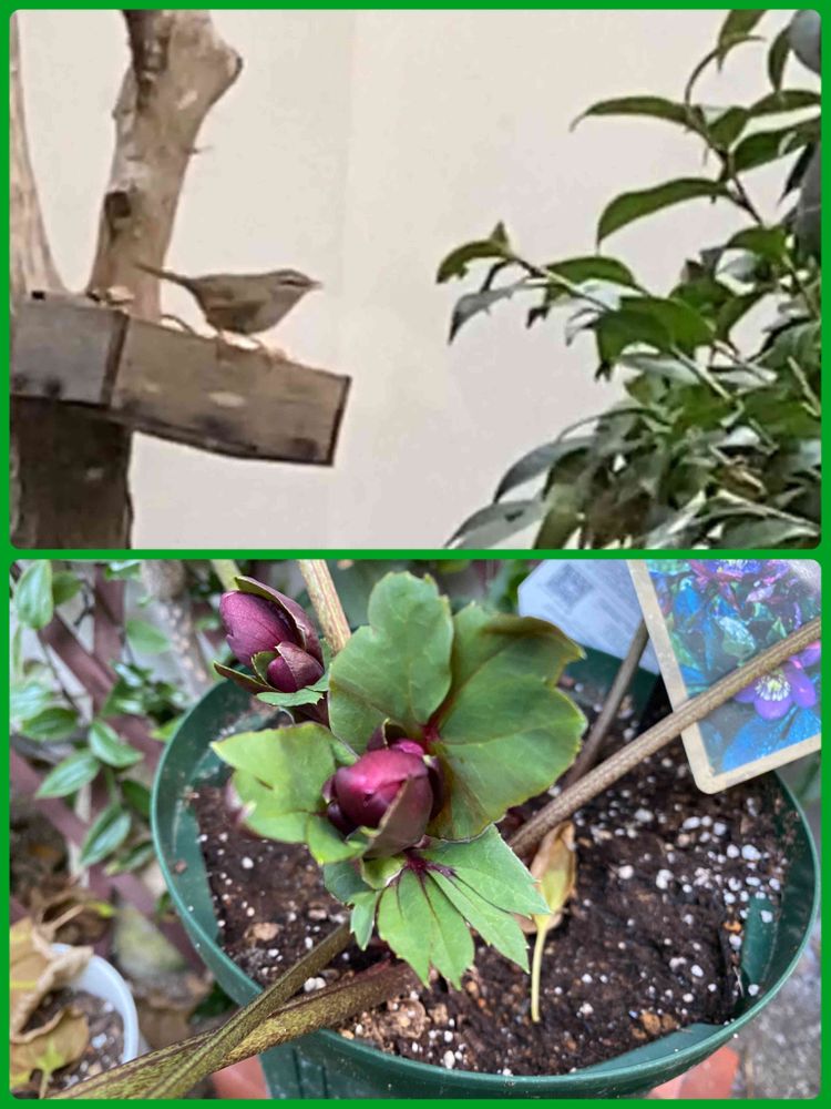 ウグイスが遊びに来るなんてすごーい🤩クリスマスローズ楽しみだね😊