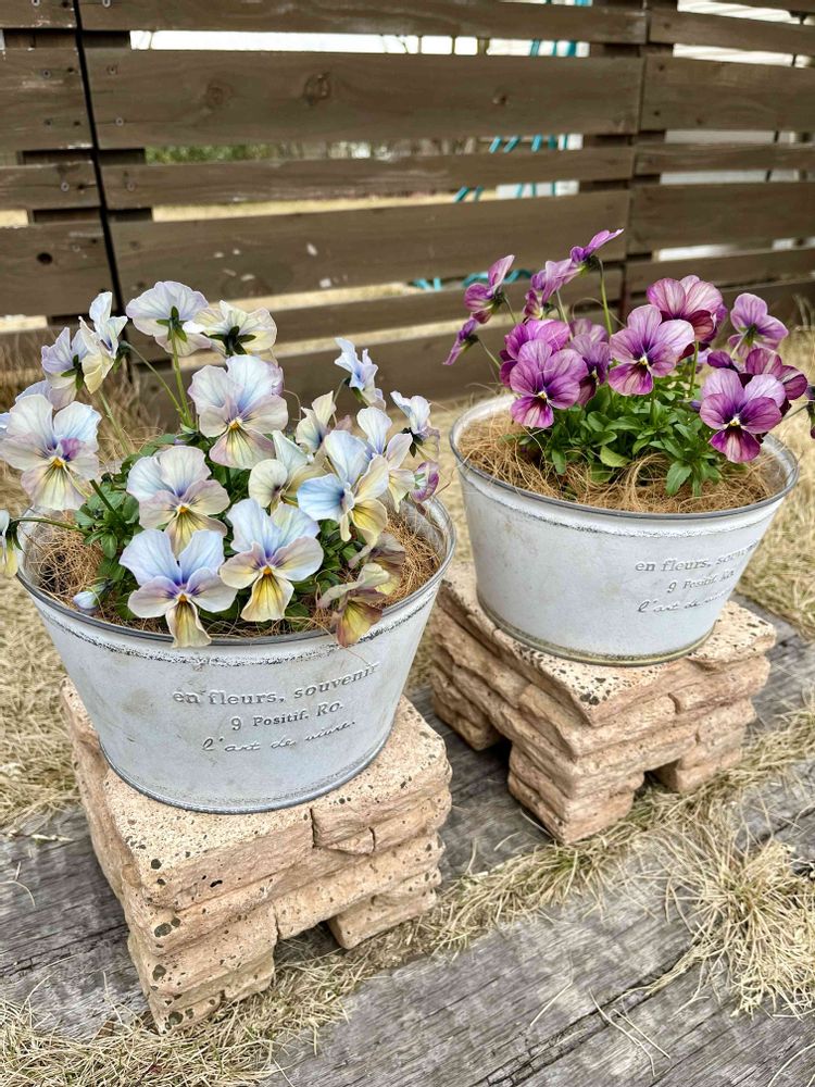 素敵なビオラさん、沢山お迎えしてるんですねー💓ブリキのプランターもかわいい😍