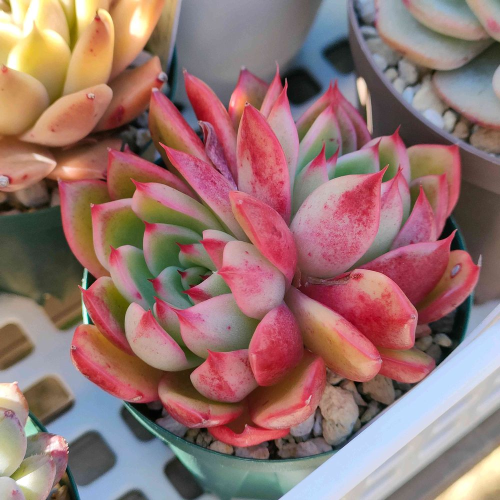 くすみカラー?のピンクに紅葉する多肉が多いので