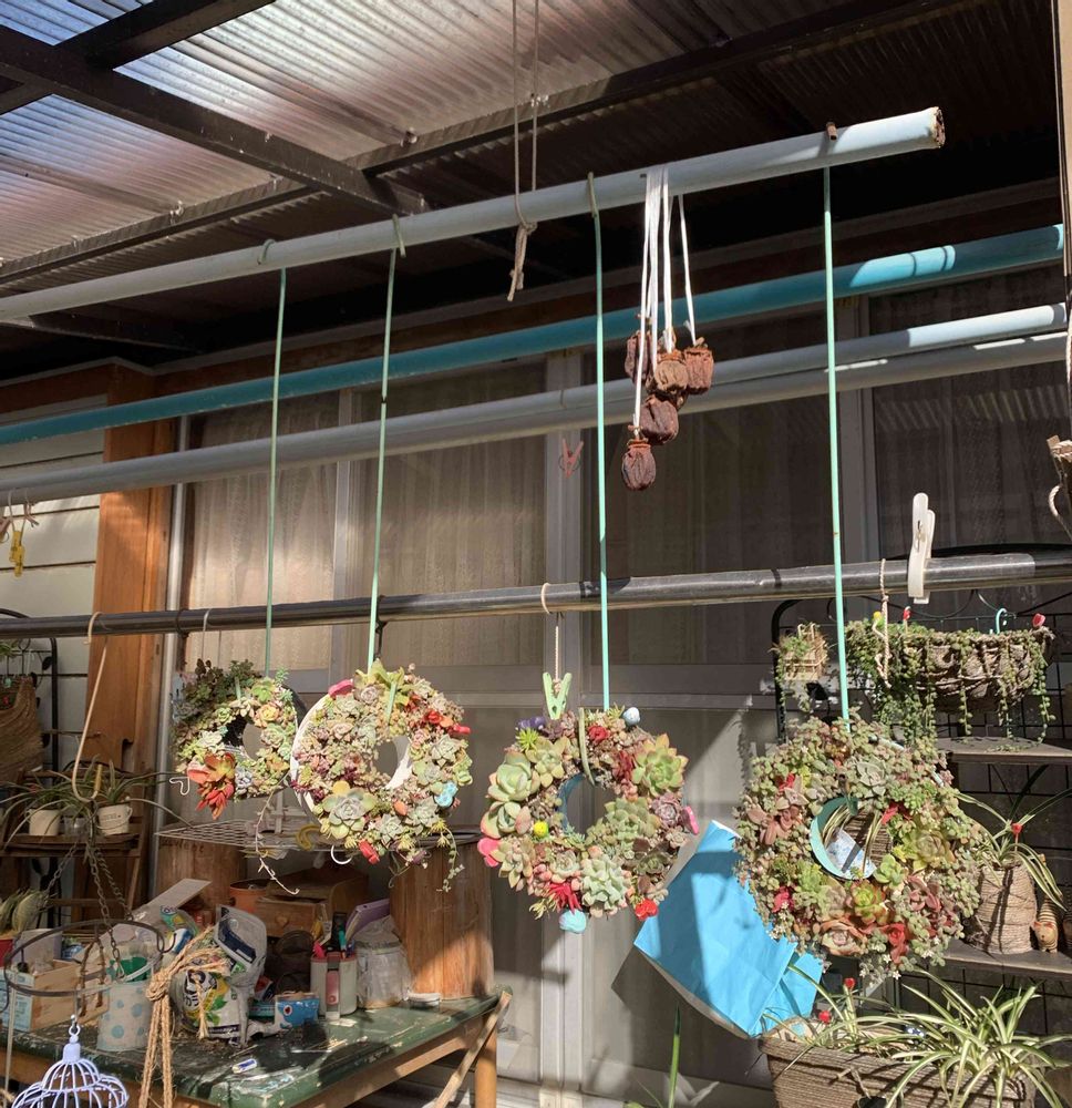 まだ根付いてないのは、平置きにして、多肉小屋に入れて、根を張らしてから吊ります。