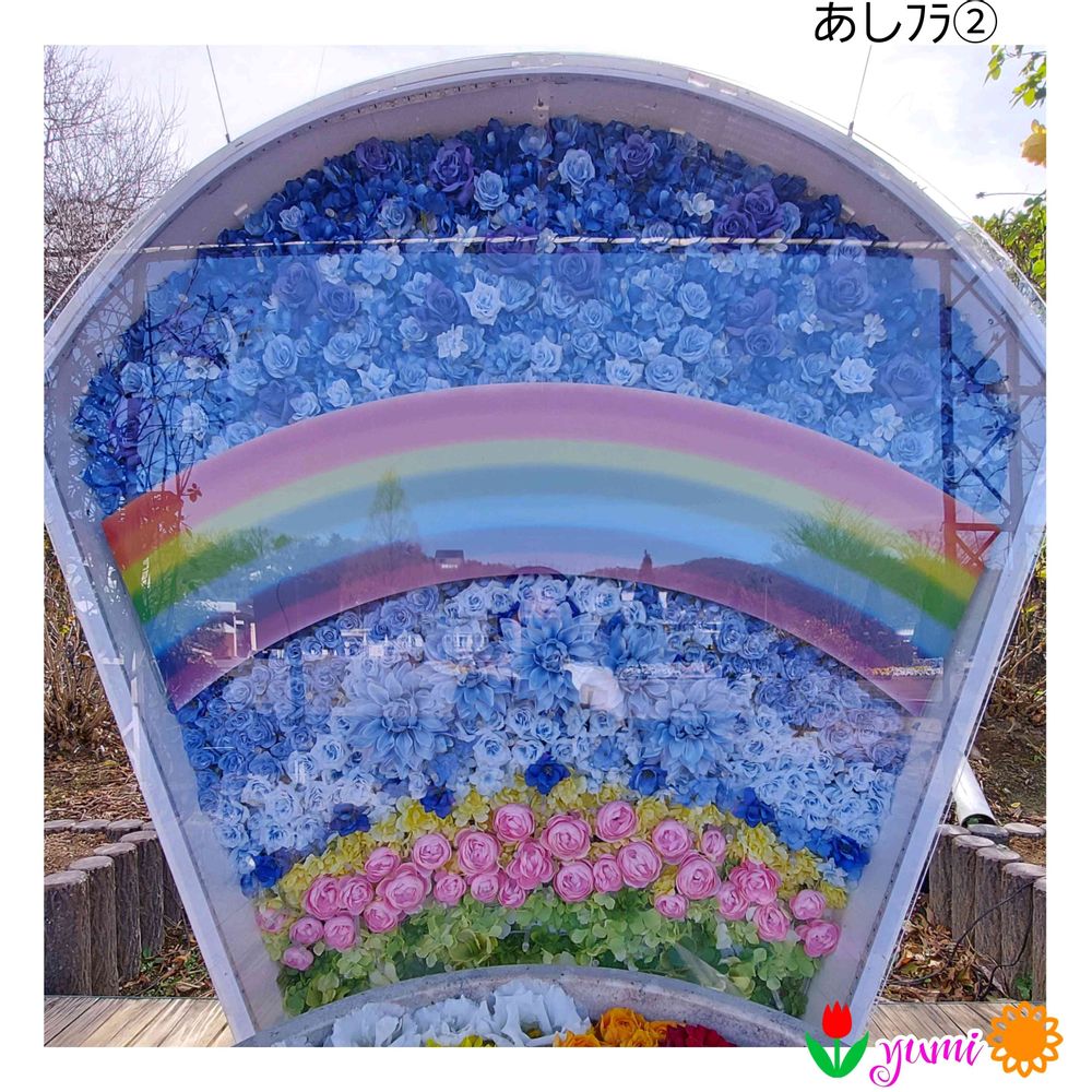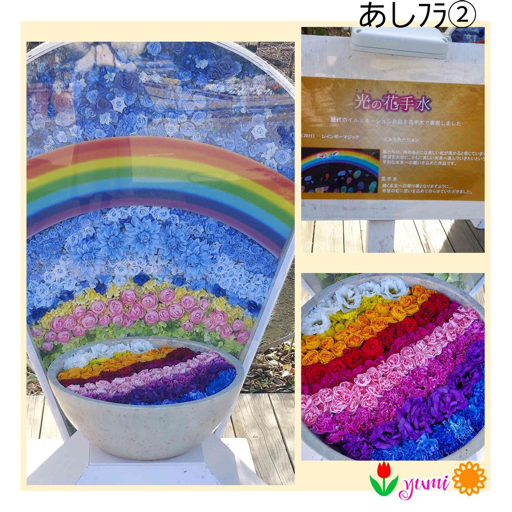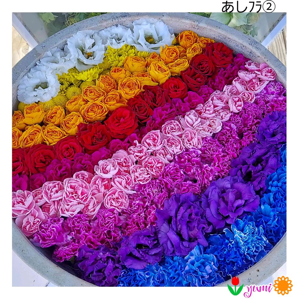 レインボー🌈カラーの花手水ステキ( ´͈ ᵕ `͈ )♡