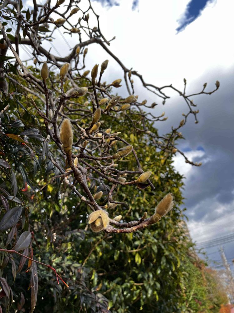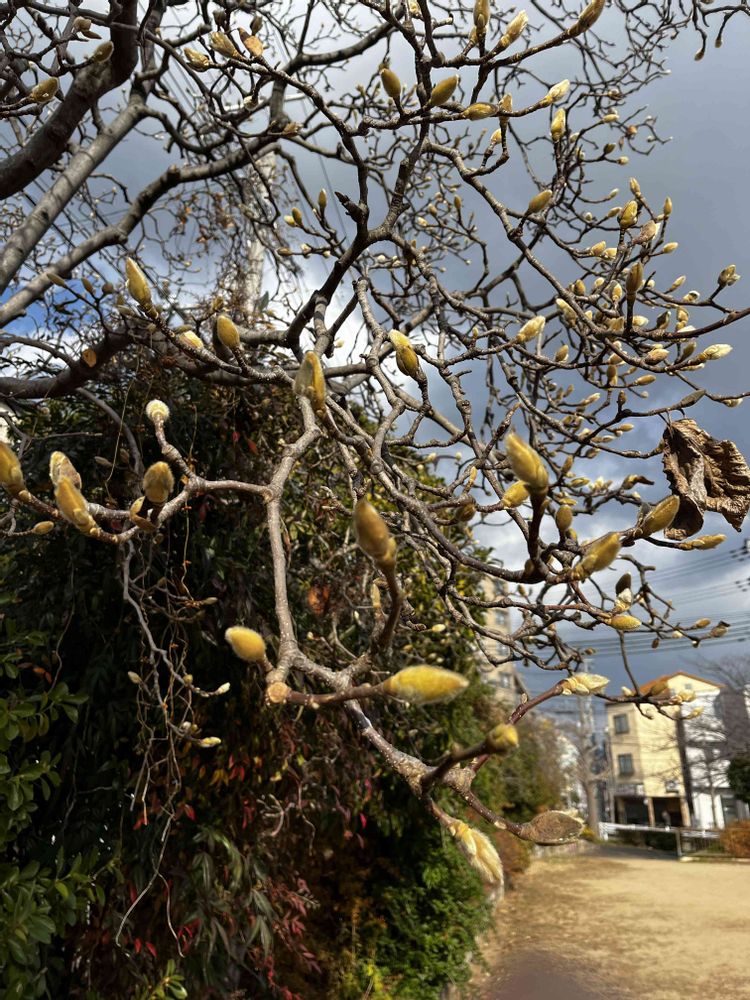 一面に木蓮が咲く公園。ブーン🐝…飛んでくるようで…🤭可愛い(((o(*゚▽゚*)o)))♡