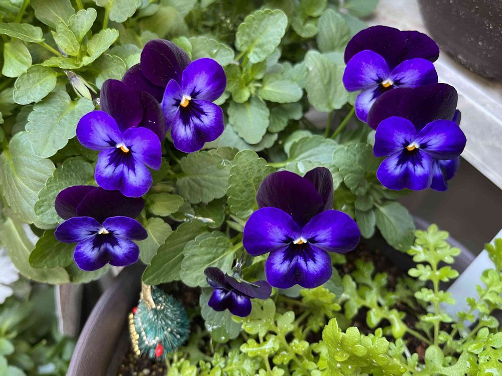ノーブランド98円のビオラさん。色合いだけで決めました❣️美しいというよりは「色濃ゆ!」って感じです。同系色の大輪パンジーと白のアリッサムとの寄せ植えですが、今はビオラだけがモリモリ😅
