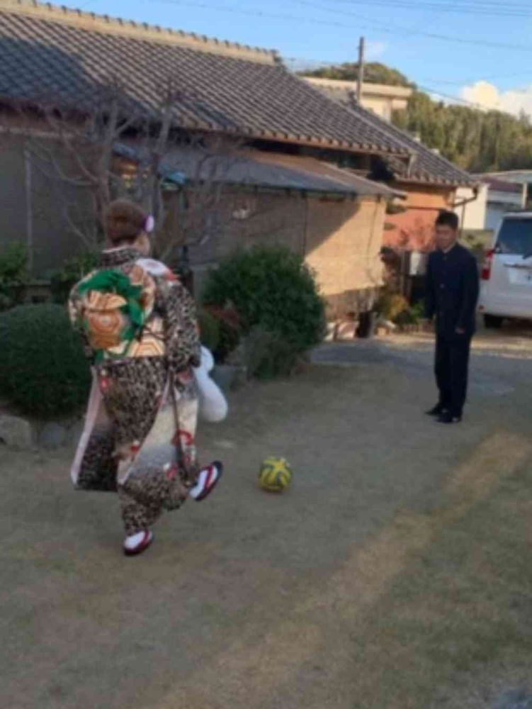 振袖でサッカー⚽️素敵なお嬢さまです😆