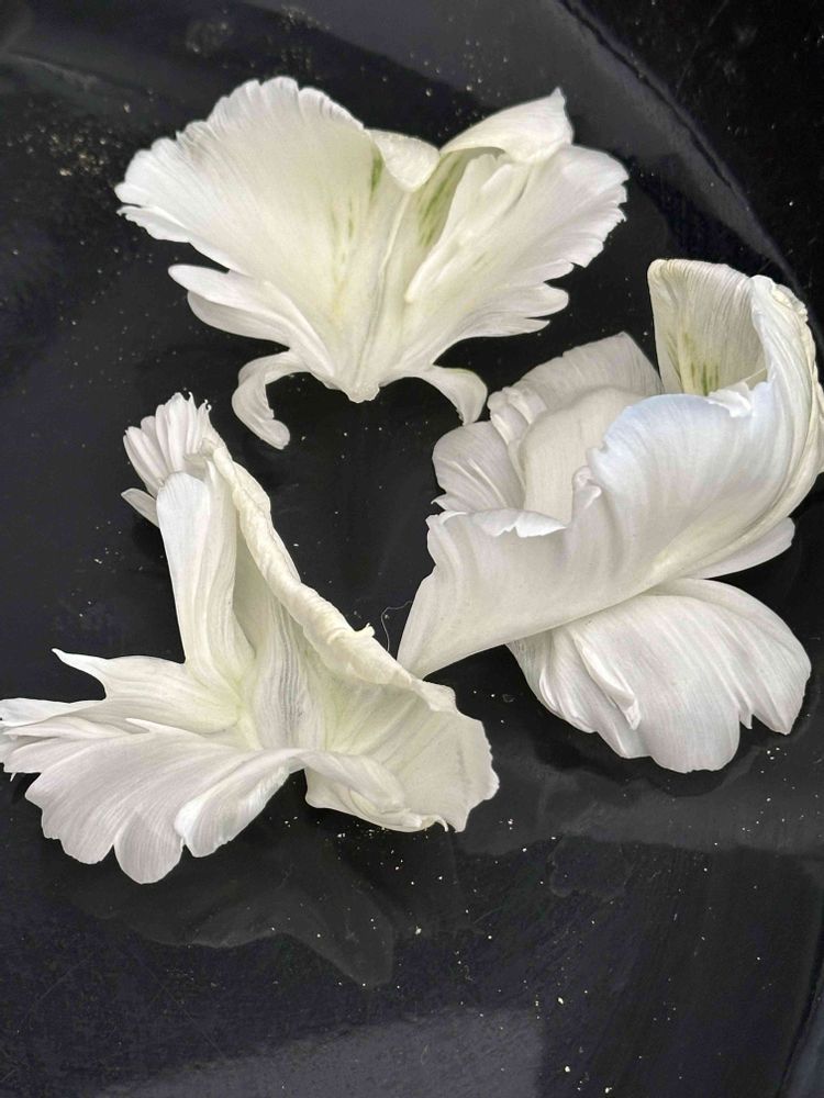 3.切り花にして1週間、散ってもなおオウムの威厳🦜💕花びらが分厚く硬いのが特徴です👀
