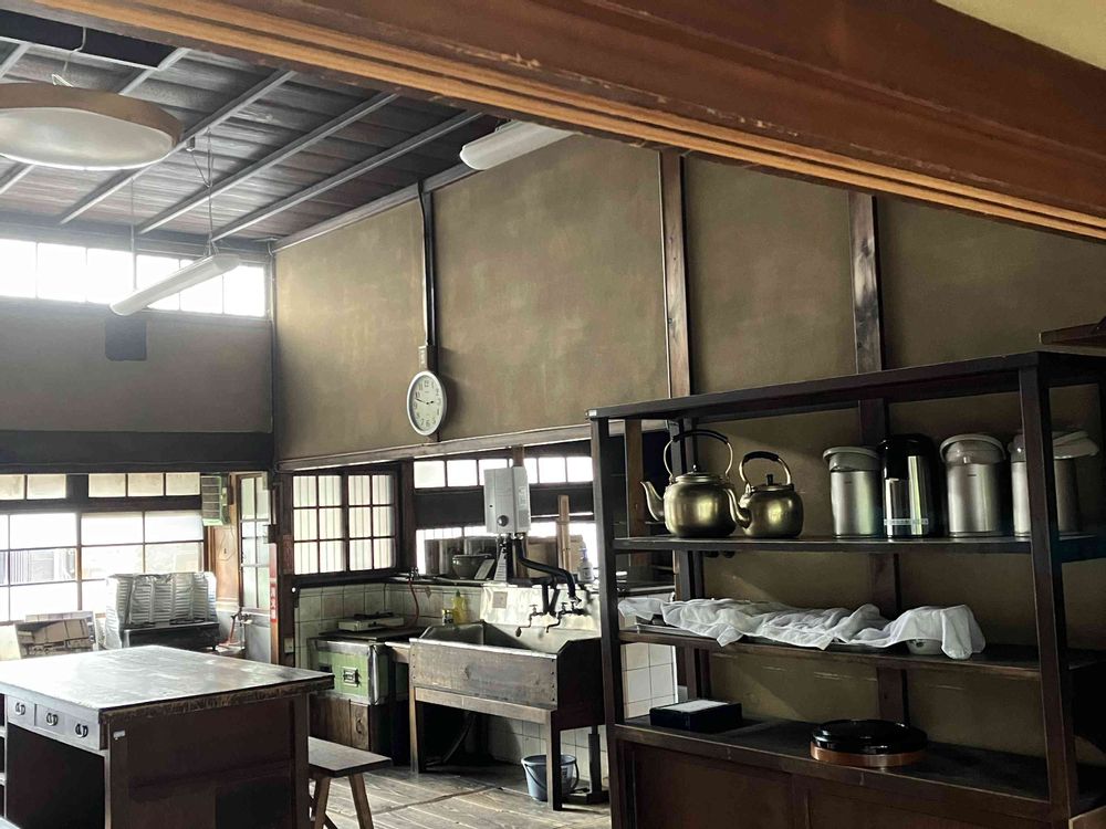野田市市民会館(旧茂木左平次邸庭園)亀甲萬を本印とした醤油醸造家の邸宅 市に寄付され市民会館としてオープン 台所 お風呂にシャワー🚿 天井を見て 雨が降ったら苔も美しい