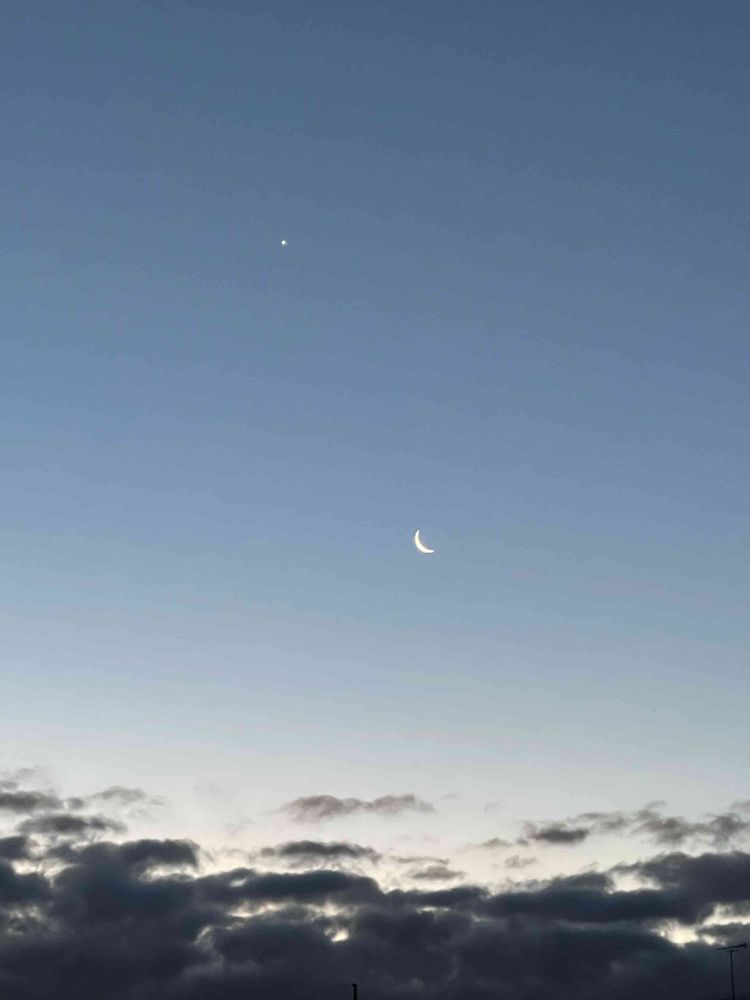 ➊ 朝6:30頃のお月さまと、金星かなって思いながらパチリです!