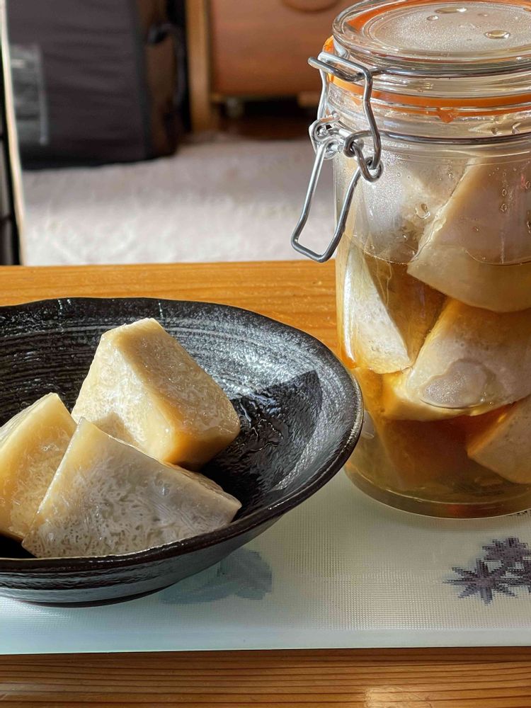 去年カレーに入れてみましたが色はドス黒く変わってしまうし食感はグニャグニャで崩れてしまうし、煮〆にしても単独で煮あげて盛り付けで一緒にするようにしないと、レンコンや里芋と一緒に煮てしまうとやっぱり曇り空みたいな色にかわってしまう厄介な子ですよね😝