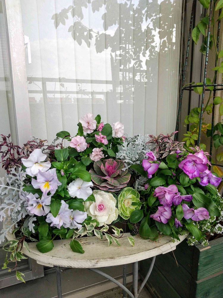 八重咲きのパンジーは初めて使ったのですが、ファビュラスのソフトな色合いで全体が優しい感じに仕上がりました💗