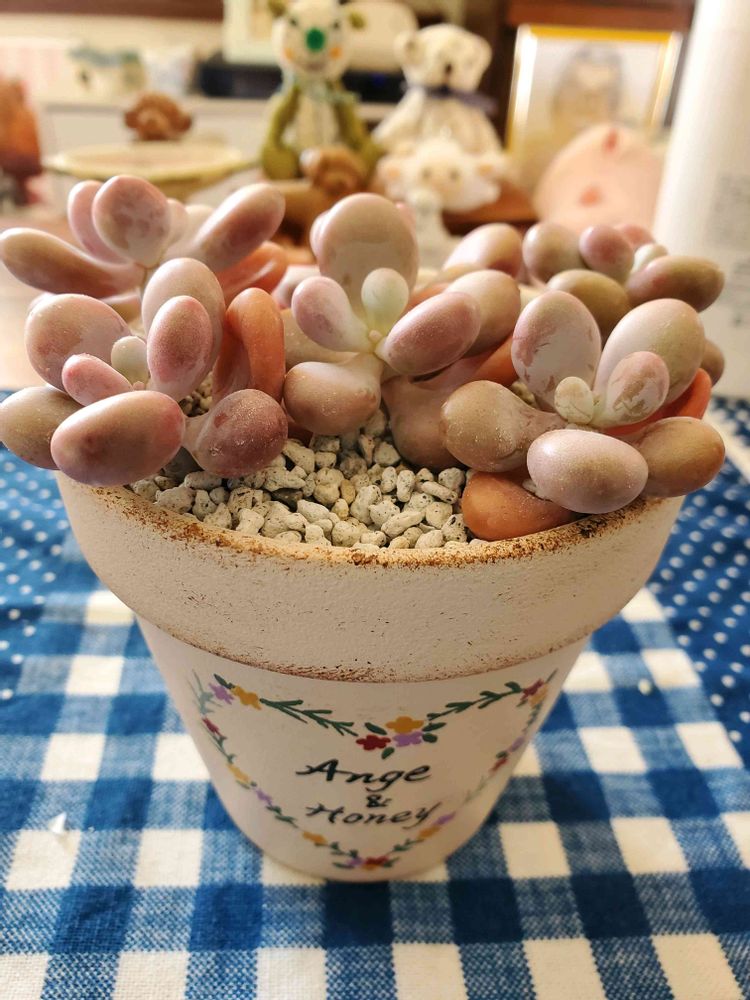 愛犬の名前入りのお気に入りの鉢に植えてみました☀️