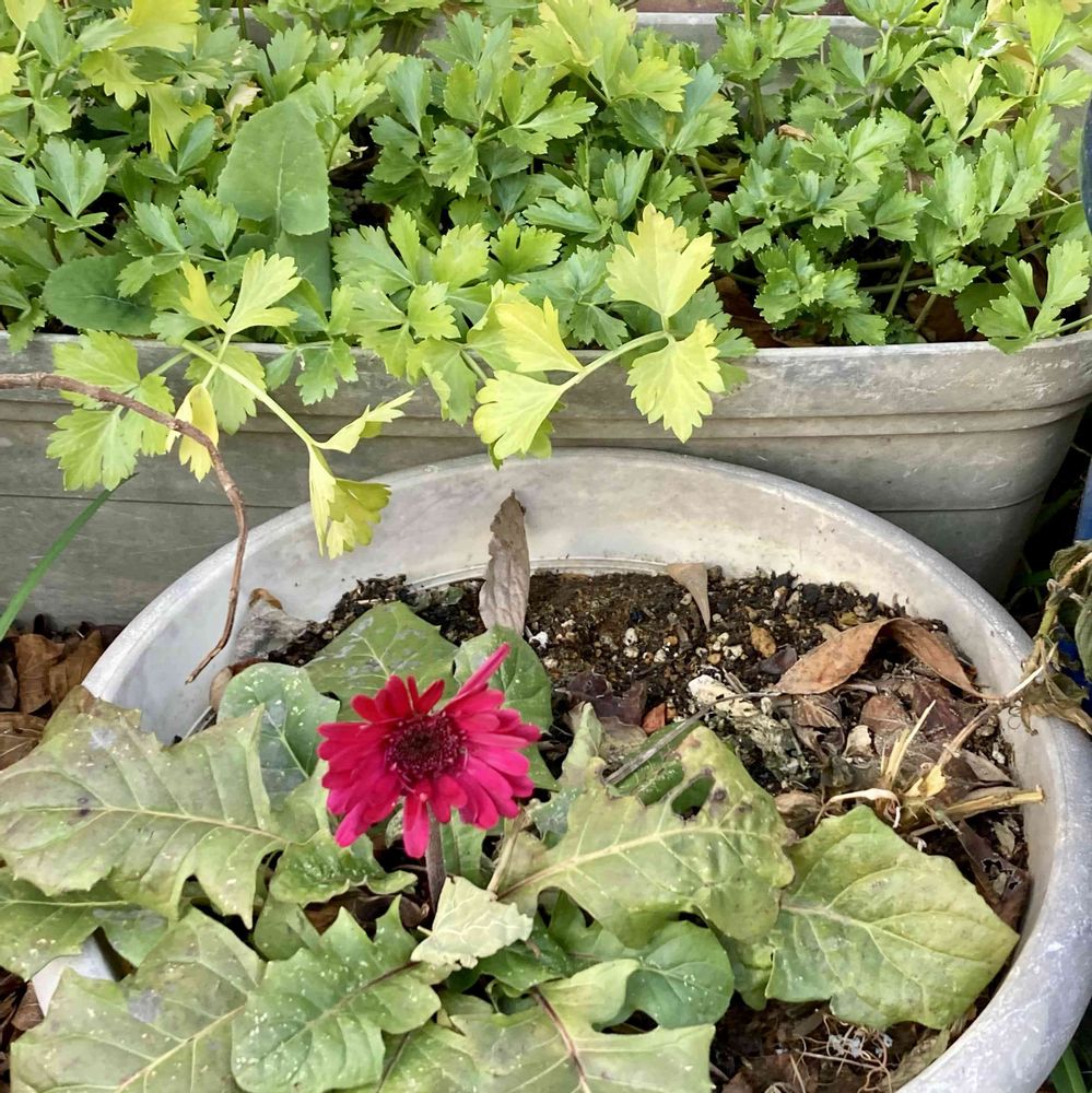 はい、ガーベラは前に投稿したかなと、今回は後ろのセロリちゃんを紹介しました‼️食べないのに、ツヤツヤして綺麗な葉っぱなので貰って植えてみたら、元気に大きくなりました‼️食べなきゃ申し訳ないので、今日来る友人達に欲しいか聞いてみます⁉️
