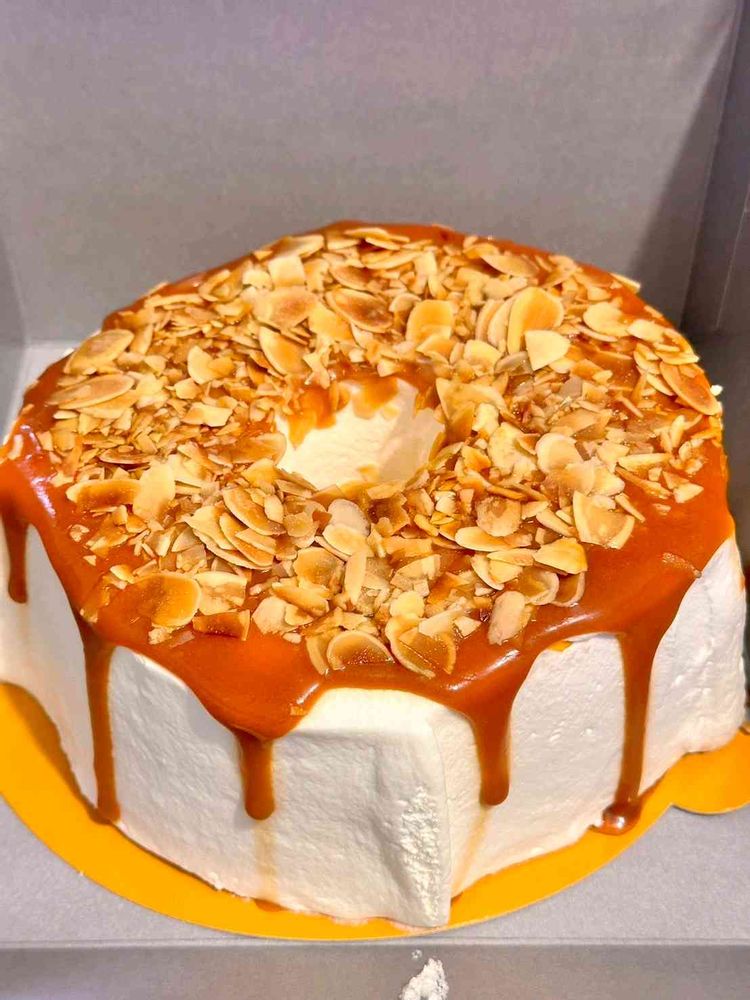 滑らかな生クリーム、ほろ苦いキャラメルソース、“生キャラメルシフォンケーキ”です😋