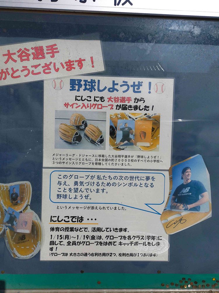 その後、小学校の大谷選手の贈ってくれたグローブが届いたというお知らせが掲示板に貼ってあるのを見て、それもまた嬉しくなって、思わず📸