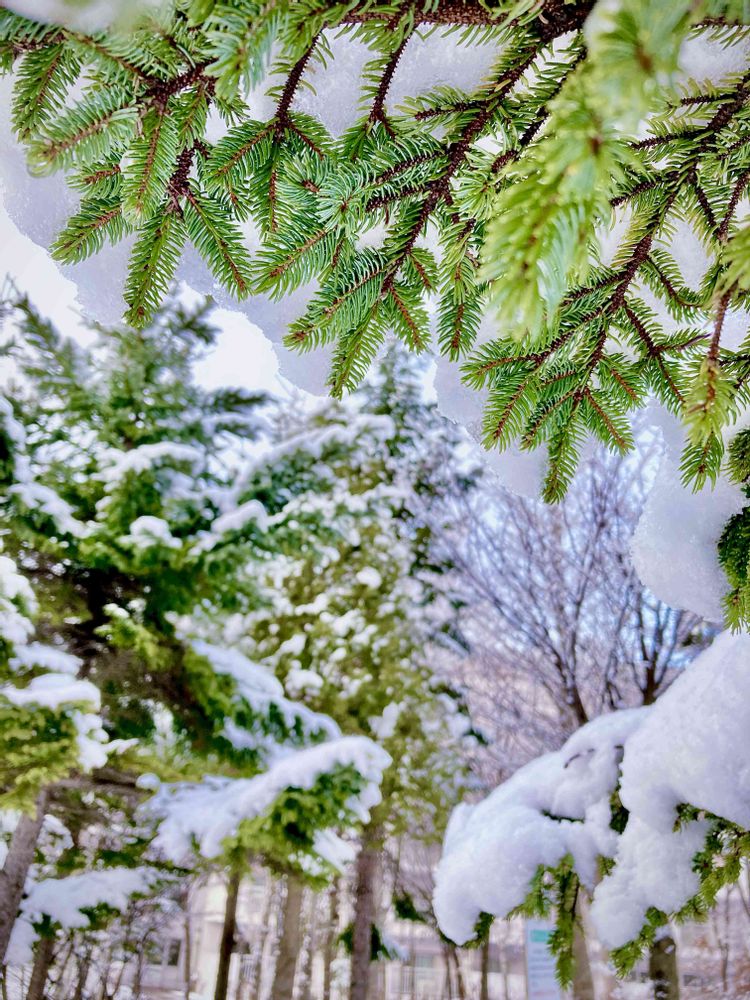 雪が積もったモミの木🌲の下に…コッソリ入ってみたら…すごく静かでヒンヤリ☃️✨雨宿りならぬ「雪宿り」❄️🤍たくさんの時をかけて、この地に根を下ろした大きなモミの木🌲は…そっと語りかけるように優しく包み込んでくれました…😌💚