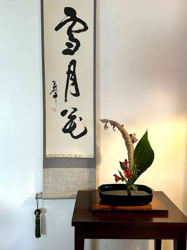 コメントありがとうございます。はい、掛け軸は雪月花です。好きし小さめのお軸ですが、日本の実家から持ってきたものです。かなり年季が入ってきましたが、好きな掛け軸です。