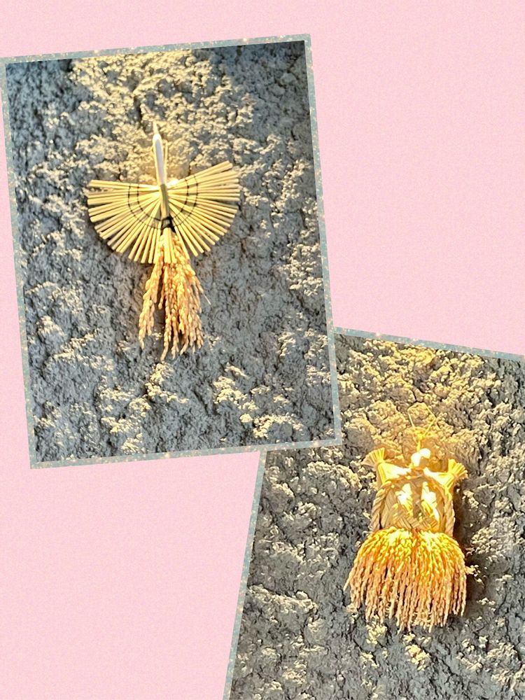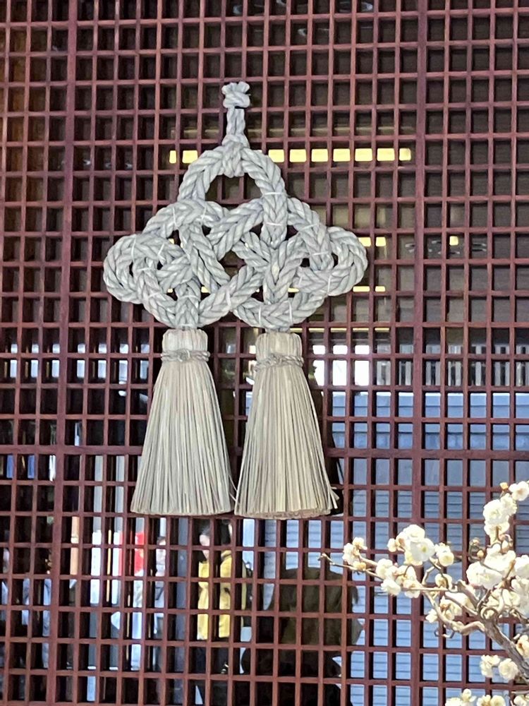 3⃣4⃣梅が枝餅のお店の鶴亀の藁細工と飾り結び