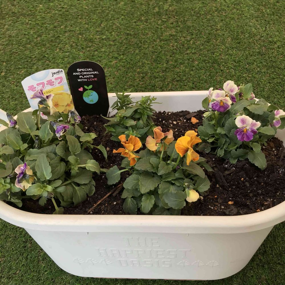 📌② 花ちゃんビオラ3🌱とハルディンさんのネメシアモフモフイエロー🌱をグローコンテナに寄せてみました🐒🎶