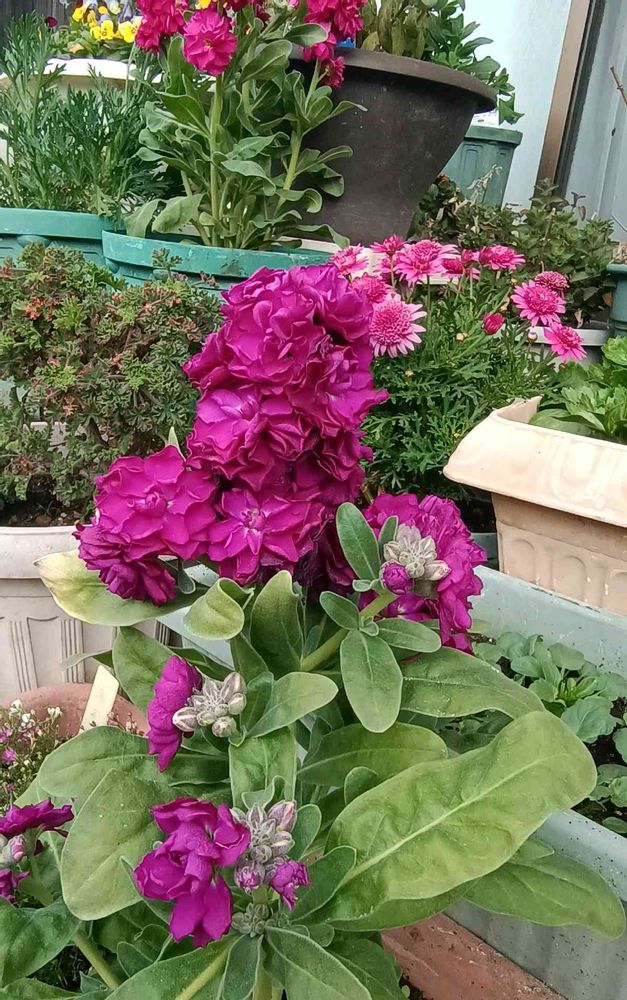 元気良く青々した葉で、立派に成長しているストックに、元気を頂きました😊。