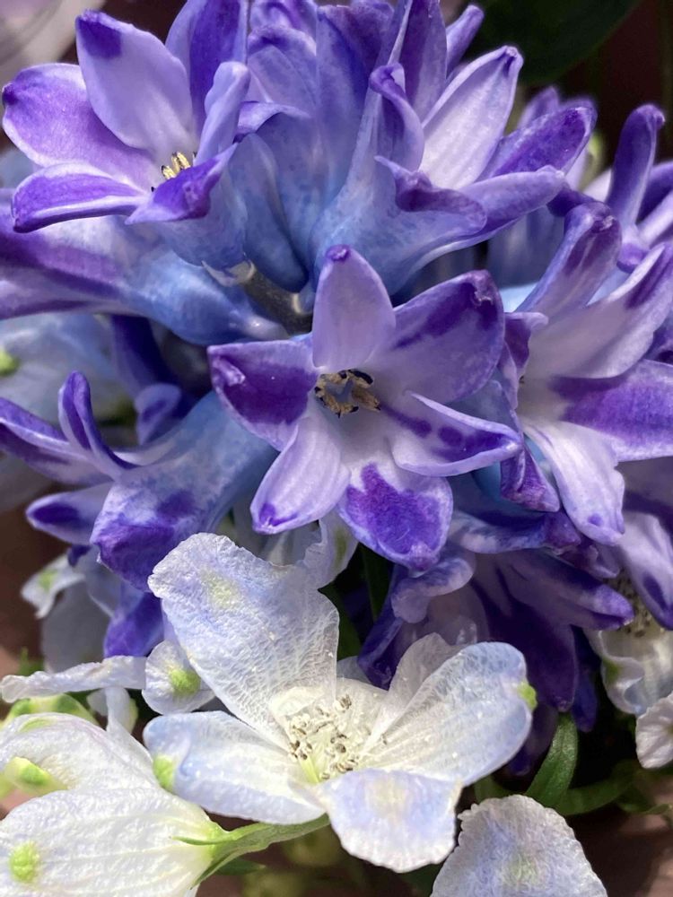ヒヤシンスさん紫色に白い絞りが入った様で素敵なお花ですね🤍💜