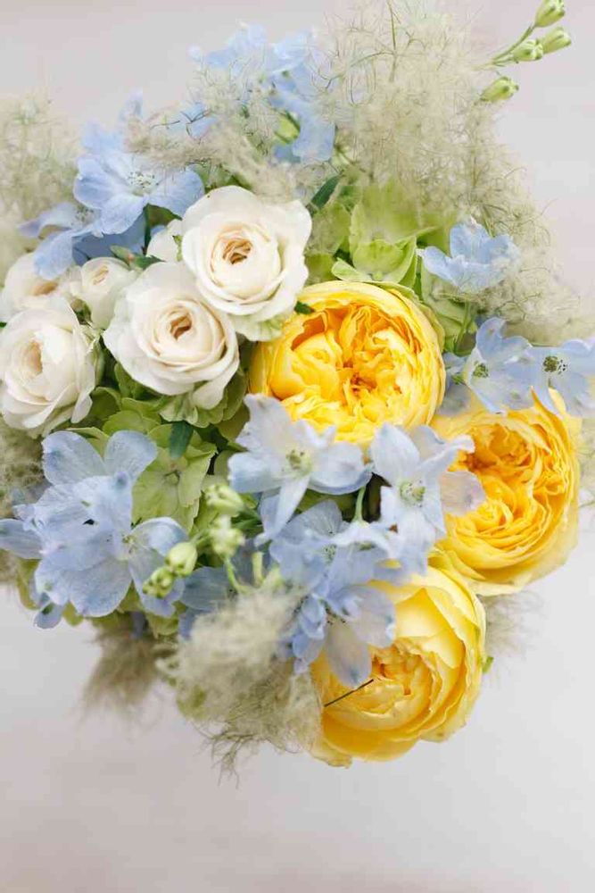 先代うさぎのなっちゃんの命日とかなのお誕生日のブーケ♡なっちゃんは黄色のイメージだから、毎年ブーケは黄色が入ってるかも