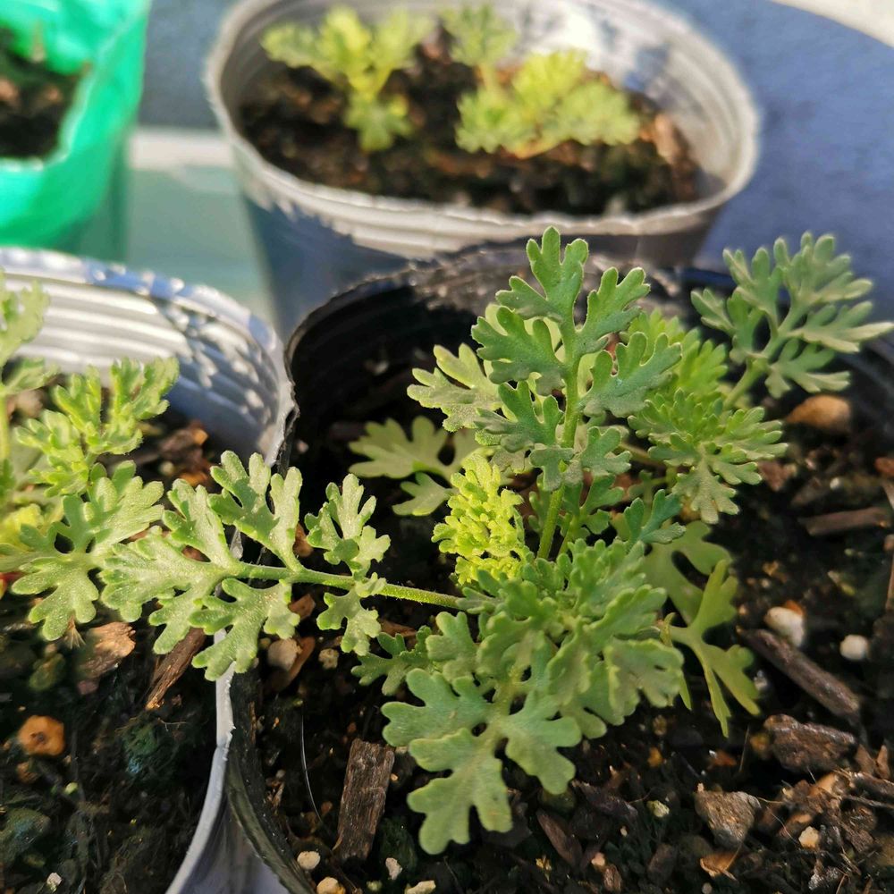 昨年花壇で育てていたタナセタムジャックポット。種を取り、秋に播きました。なかなか成長しないけど、また夏にかわいい花が見られるといいな…