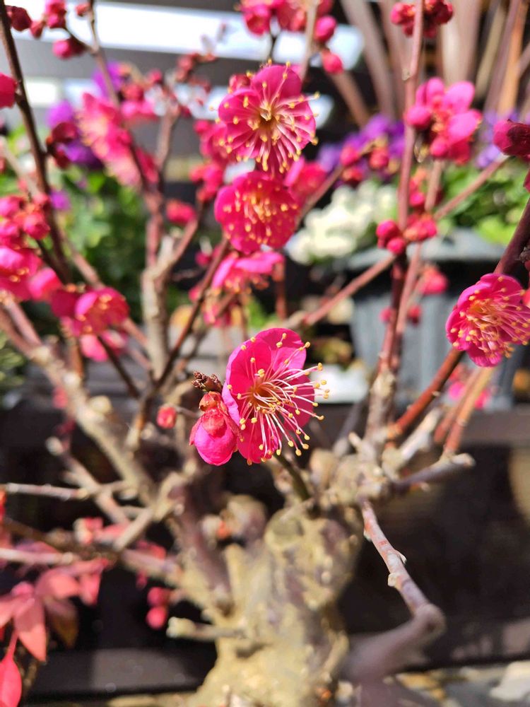 昨年の松竹梅寄植えの紅梅も咲いて、シンビジュームやシクラメンにガジュマル💕(本当は義務お母様の心配りです)