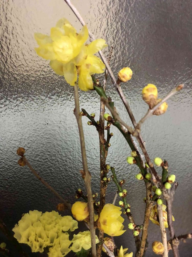 お正月の時の残り。蝋梅。ツボミから次々と花を咲かせるけど