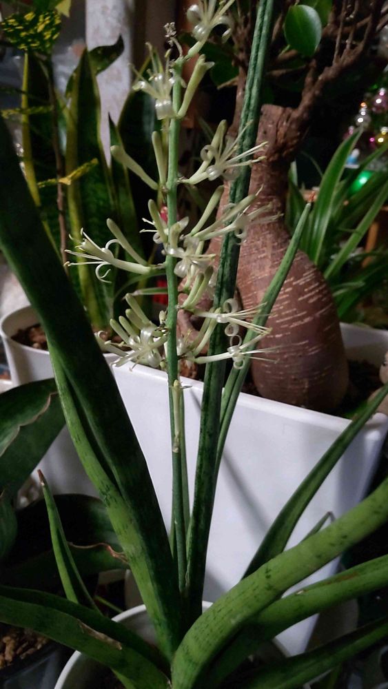 サンセベリア何種類か育ててますが、子株は出るんですが、お花初めてなんです、可愛い花でした。