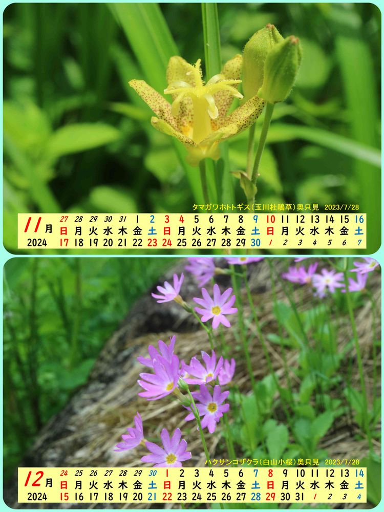 1月のトウゴクサイシン~ハクサンコザクラ迄、素敵なカレンダー🗓️欲しいです😌💓