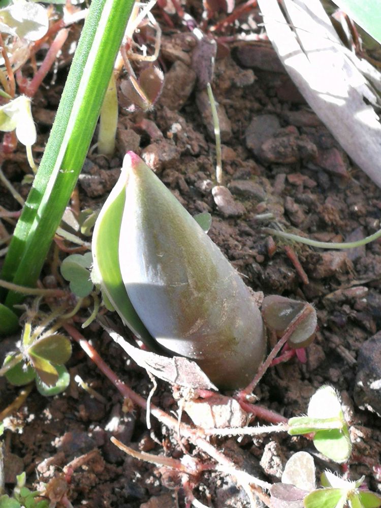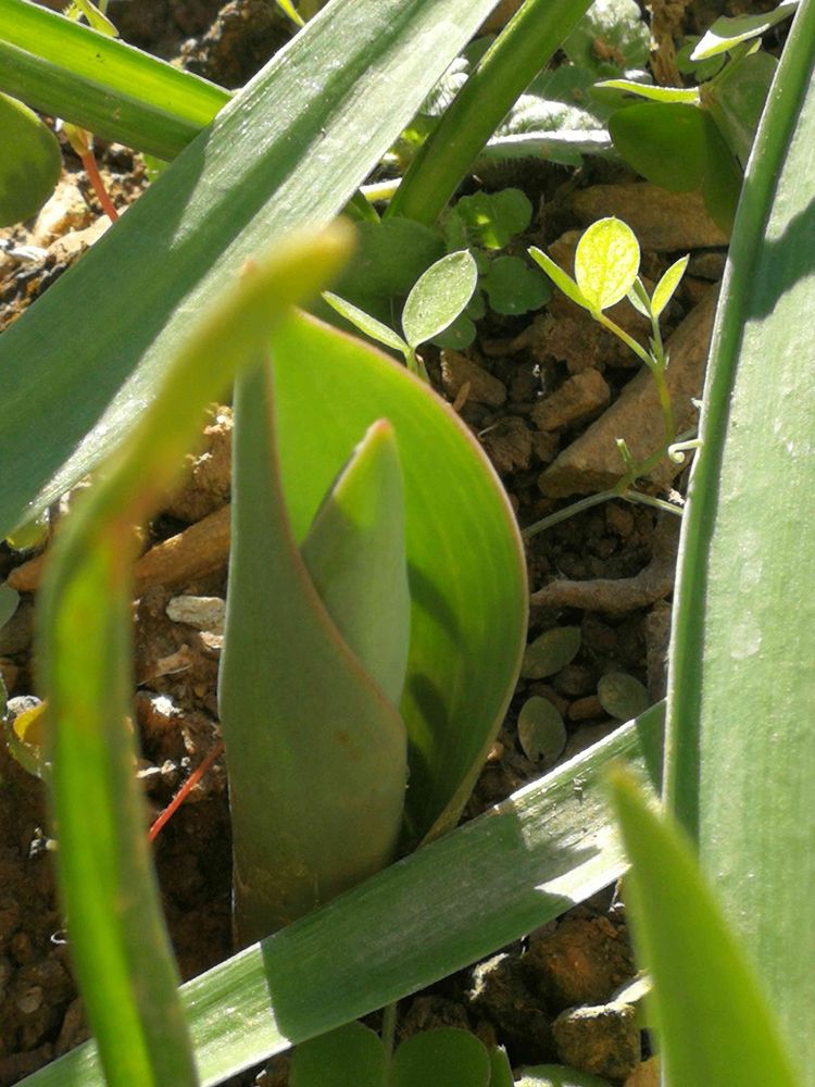 ②③、倉庫横に、畑の土を持って来て、小さな花壇を作った所に植えたミニチューリップの球根の芽🌱が出て来ています♫