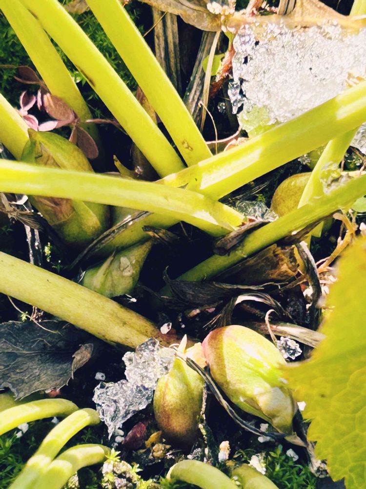 クリスマスローズを日が当たる場所に移動したついでに葉っぱの整理していたら、なんか花芽らしき丸っこ